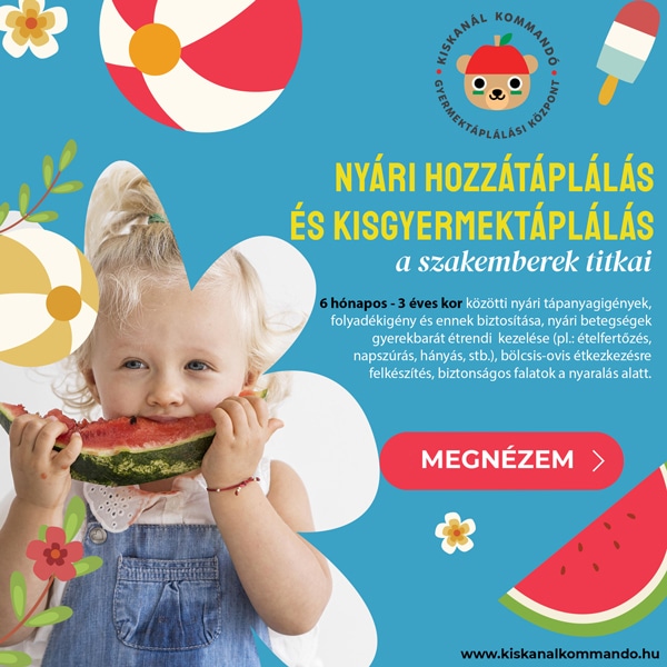 - NYÁRI Hozzátáplálás és kisgyermektáplálás komplex előadás videó (a fenti témákkal, diasorral, 6 fő nyári témában, kb. 100 perc)